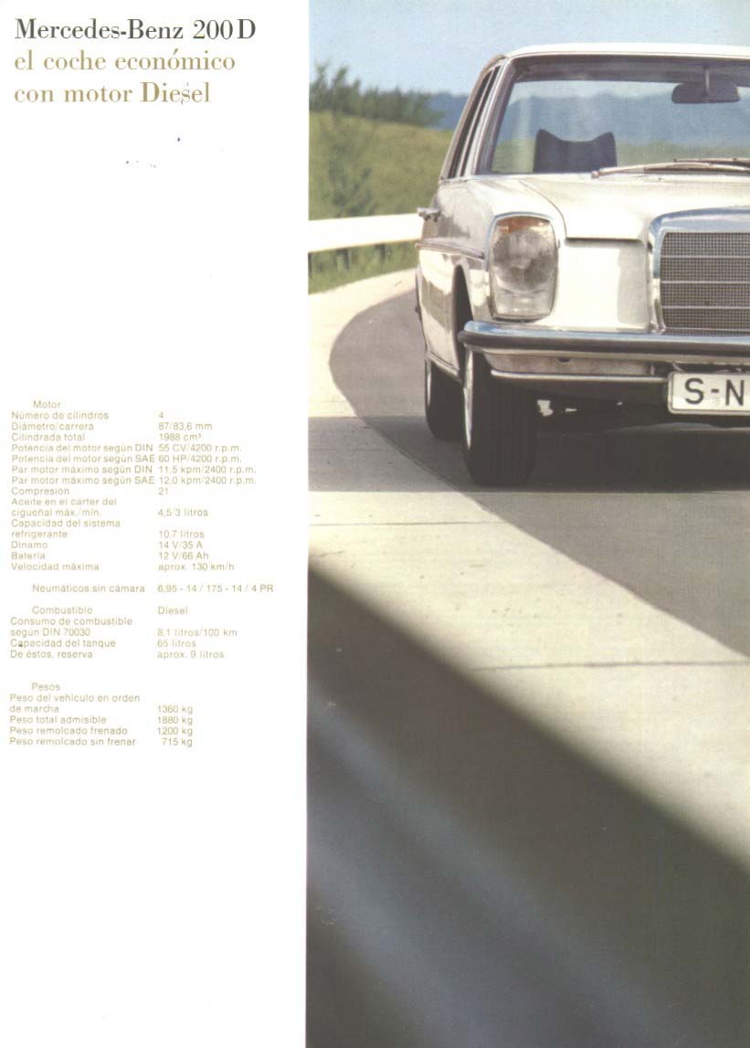 Recorte de la revista L'auto Journal en el momento de la presentación del W-115 240 D 3.0. Corría el año 1.974. : Durante el verano, el 240 D 3 vino a enriquecer la gama de la pequeña generación de Mercedes. Bajo una carrocería de línea conocida, se escondía un un novedoso motor Diesel de 5 cilindros. Estamos, por tanto, ante el único coche del mundo, hasta la fecha, que se beneficiaba del cilindro suplementario, que le otorgaba una cuota de potencia superior.