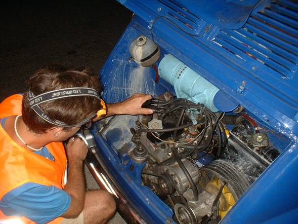 Al día siguiente bajo a mi coche y hago balance de todo; dirección abierta, carter roto, culata alabeada, frenada imprecisa, un encendido completo, un carburador para rehacer y unos 4500 kms más de aventura, amistades, experiencias, novedades, y mucha riqueza personal.
