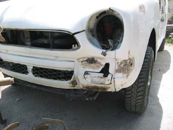La tarde-noche anterior a la concentración me la pase colocando paragolpes, puliendolos, colocando los intermitentes, arreglando la bocina, arreglando la bomba del limpiaparabrisas, colocando cantoneras... para que luciera este aspecto.
