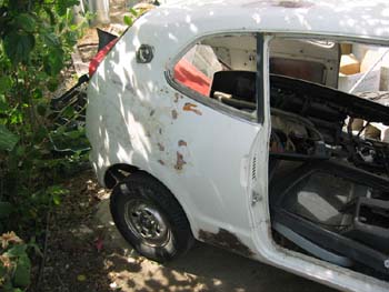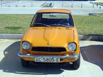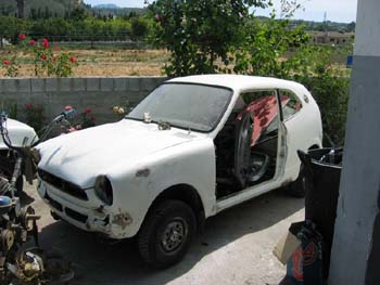 Pues éste era el estado del coche, a priori, le vi que el color no era el original, llevaba una bocina moderna, le habían suprimido las bonitas (y a la vez problemáticas gomas del techo), tenía bollos, suciedad, un trabajo importante en la tapicería…. Pero estaba muchísimo mejor que el que tenía y era una oportunidad que no podía desaprovechar. Así que ofrecí 900€ y el dueño aceptó. Mi tio se encargó de los preparativos (recogerlo, revisión, itv, cambio de nombre, gruas y embarcármelo... hasta Cadiz), al cual se lo agradeceré eternamente.