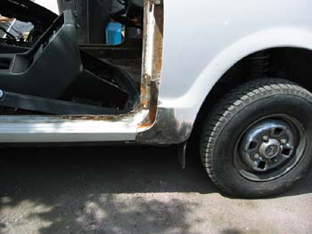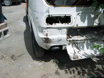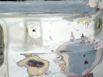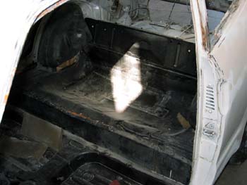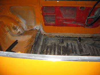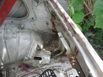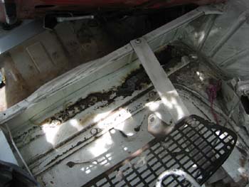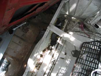 …y bajo el asiento trasero, todo podrido. El chapista denomino a esta zona “La ratonera”.
