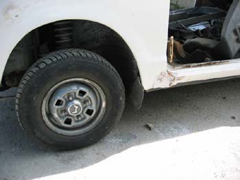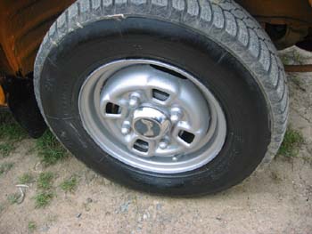 Detalle de la llanta pintada (siempre es conveniente aunque sea por fuera el lijar y pintar) y del neumático, que aunque se vista de seda… hay que cambiarlo igual.
