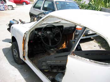 ¿Qué me queda por hacer? Pues bastantes cosillas, entre ellas rehacerle la bomba de frenos, cambiarle el cable del freno de mano, cambiar zapatas y bombines, tapicería, la tulipa de la luz de cortesía, cambiar ruedas (¿posible banda blanca?¿le quedarian bien? Lo que si voy a hacer es comprar las originales que calzaba que eran marca Kumho, ya que hay un distribuidor Kumho en Málaga y me han dicho que me las pueden suministrar –Neumáticos Al-Andalus-), encontrarle un espejito cromado acorde, buscarle los topes de goma de los paragolpes traseros y encontrar alguna pieza dificililla (como el cubre faros traseros interiores que son de scai, o los parasoles).