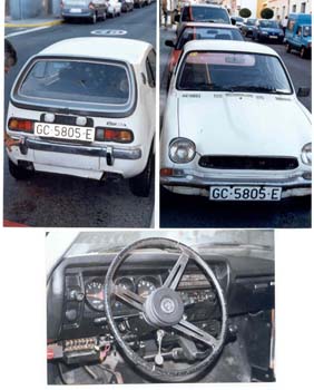 Bueno sin más preámbulos comenzaré la historia. Todo comienza con la idea de recuperar el que antaño fue el primer coche de mi madre (tal como hice con mi padre, es más fue éste el que me animó a hacerlo); tras haber pedido el pertinente informe a tráfico resulta de que mi tío lo dio de baja y fue imposible recuperarlo, después adquirí uno amarillo “a ciegas” y resultó estar bastante mal, así que en cuanto mi tío (el mismo que tuvo el coche de mi madre) me dijo que un vecino suyo de Telde tenía uno, no me lo pensé dos veces, le pedí que por favor le sacara unas fotos y tratara de gestionarme la compra si estaba bien. Quedó con el hombre y éstas son las fotos que mi tío hizo y me envió: