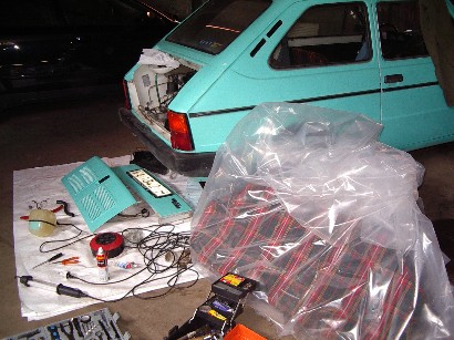 Correas, platinos, condensador, tapa delco, rotor delco, juego de triángulos (grrr), chaleco 'omologato' (grrr), anticongelante: 47 euros