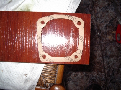 Con papel para juntas de 0'8 mm, un bote de tinta para estilográficas y un bastoncillo para los oídos untamos la superficie del cuerpo de la bomba y saguidamente, antes de que la tinta se seque, colocamos el papel encima para marcar el perfil de la junta: