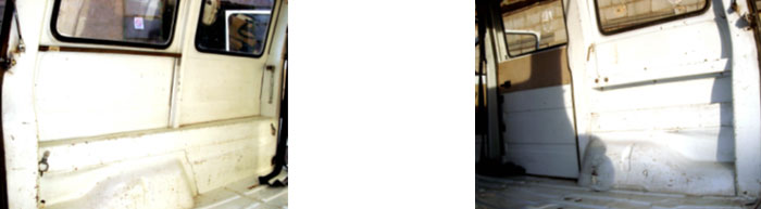 - Se despojaba la unidad de guarnecidos e interiores, seccionando la parte superior de la carrocería. En la parte delantera se cortaba la carrocería por la zona que comprende la parte baja del salpicadero. De puertas hacia atrás la antigua carrocería desaparece por completo, a excepción de las taloneras, que quedarán ocultas en la nueva carrocería.