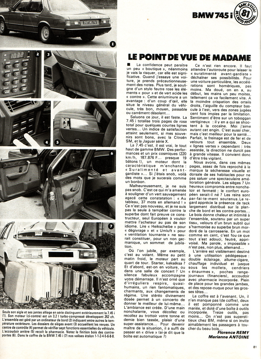 YO TENGO UN 735i AÑO 81, Y HASTA EL DIA DE HOY ES MI ADORACION, NO HE ENCONTRADO OTRO AUTO IGUAL, POR DONDE VOY LA GENTE REGRESA A MIRARLO DE FRENTE O DE REOJO, ES UNA LINEA QUE NO PASA DE MODA, ADEMAS MECANICAMENTE ES UN SEÑOR AUTO, LOS ALEMANES REALMENTE HACEN COSAS BUENAS