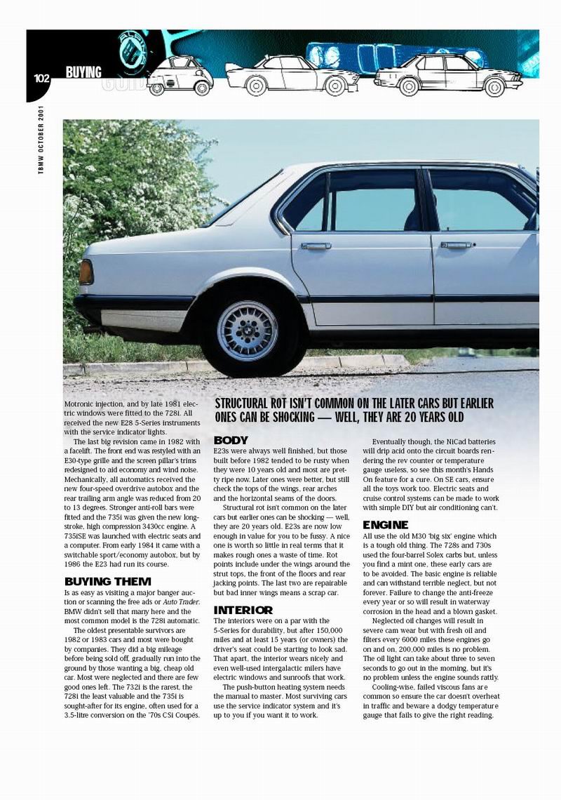 EXCELENTE ARTICULO, APROVECHO PARA COMENTARLES QUE TENGO UN BMW 728 AÑO 1979 TOTALMENTE ORIGINAL CON KM 100.000, DE COLECCION, ESTOY INTERESADO EN VENDERLO.