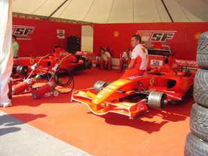 …terminando con otra gran carpa para el box de Ferrari y quedando un espacio libre justo delante de la “ Recta de las Fuentes ” (Av. Rius i Taulet), donde se formaban las parrillas antes de dar acceso al circuito, justo por debajo de la “ Terrazza Martini ” donde se reúnen pilotos, invitados y VIPs.