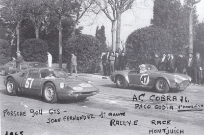 ... Godia, en su Porsche "904", se coloca a la zaga del suizo, esperando algún momento de zozobra de éste.