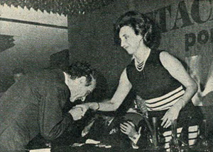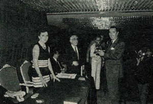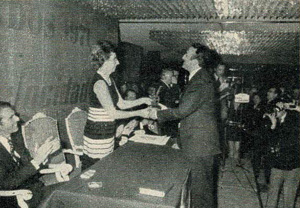 Al término de la entrega de trofeos, el ilustre notario madrileño don Alberto Villarín verificó el sorteo del Fórmula Nacional, marca Lince, fabricado por el conocido industrial y deportista sevillano Francisco Sanjuán, acto del que damos información más amplia en página aparte. Y, por último, espectáculo. Un espectáculo corto, porque el ambiente de felicitaciones, confraternidad, charla y alborozo no era demasiado propicio a la concentración. Breve, pues, pero exquisito. Porque exquisitas fueron las interpretaciones al piano del genial compositor Arturo Pavón.