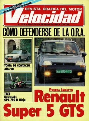 Prueba del Renault 5 GTS. Los otros Super Cinco. Toma de contacto con el Alfa Romeo 90. Coches de bomberos de época en un museo de Madrid. Prueba de la Kawasaki GPZ 750 R Ninja. Consultorio técnico del lector. Rallye París-Dakar. Dos españoles a Borneo. Karting Magalluf, Mallorca se pone al día. Peugeot 205 Turbo 16, el gran rival del 85. Campeonato de Velocidad en Circuito.