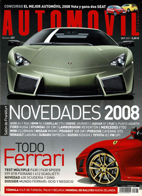 ESPECIAL FERRARI. Prueba Comparativa: Ferrari F430/F430 Spyder/599 GTB Fiorano/612 Scaglietti. Dossier: el mundo Ferrari. Concurso: el mejor automóvil 2008. Contacto: Cadillac CTS, Renault Lagun III, Subaru Impreza. Audi, innovación sin límites. Rallye Ferrol. Rally Príncipe de Asturias.