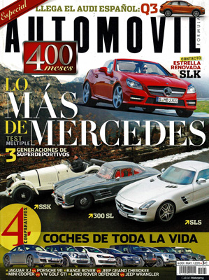 Prueba Comparativa: Mercedes SSK/Mercedes 300 SL Alas de Gaviota/Mercedes SLS AMG. Prueba Comparativa: Jaguar XJ 5.0 V8 SC/Porsche 911 Carrera. Prueba Comparativa: Jeep Gran Cherokee V6 3.6 Overland/Range Rover TD V8 4.4 Vogue. Prueba Comparativa: Mini Cooper/Volkswagen Golf GTi DSG. Prueba Comparativa: Jeep Wrangler 2.8 CRD Sahara/Land Rover Defender 110 SW. Seat Panda Gr.2, el primer coche oficial de Carlos Sáinz.