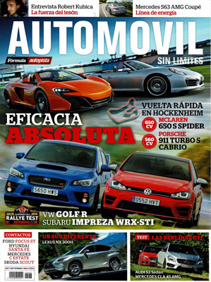 Prueba Comparativa: McLaren 650S Spider/Porsche 911 Turbo Cabrio. Prueba Comparativa: Subaru Impreza WRX STI/Volkswagen Golf R. Contacto: Ford Focus ST, Mercedes S63 AMG, Lexus NX 300h. Prueba Comparativa: Audi S3 Sedán/Mercedes CLA 45 AMG. Seat León Cupra Performance Pack. Entrevista a Robert Kubica. Goodwood Festival of Speed. Especie única: Seat Ibiza Cabrio.