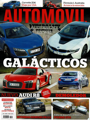 Edición limitada: Porsche 904 GTS/Porsche Cayman GTS. Prueba Comparativa: BMW i8/Audi R8 LMX. Contacto: Audi R8 Automóvil, Mercedes AMG C. Prueba: Citroën ZX Rallye Raid Evolution Baja. En Corvette Z06 por California y Nevada. Prueba: Hyundai Genesis V6 3.5 GDI.