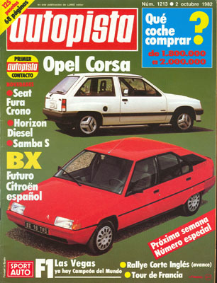 Presentación del Citroën BX. Presentación del Opel Corsa. Al volante del Seat Fura Crono. Publicidad del Talbot Horizon. Qué coche comprar? (de 1.800.000 a 2.000.000 pts.). Publicidad del Opel Manta GT/E. Tour de France. Rallye Manx.