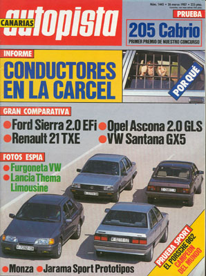 Prueba comparativa: Ford Sierra 2.0 EFi 3 Vol./Opel Ascona 2.0 GLS/Renault 21 TXE/Volkswagen Santana GX. Banco de Prueba del Peugeot 205 CTi. Prueba del Porsche 926-Fortuna. 500 km de Monza.