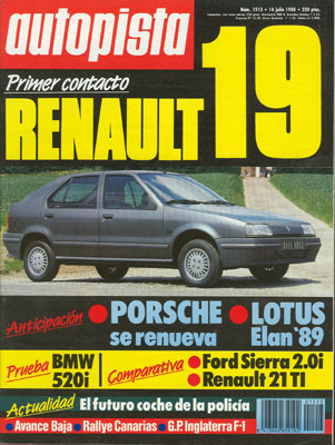 Contacto del Renault 19. Prueba del BMW 520i. Comparativa: Renault 21 TI/Ford Sierra GL 2.0i. El futuro coche de la policia. Rallye Canarias. G.P. de Inglaterra de F1.