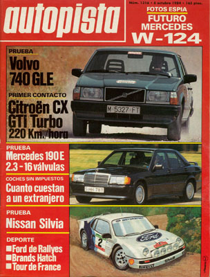 Primer contacto con el Citroën CX GTI Turbo. Presentación del Citroën BX 19 GT. Presentación del Citroën Visa GTI. Banco de Pruebas del Volvo 740 GLE. Prueba del Nissan Silvia 16 Válvulas. Prueba del Mercedes 190 E 2.3-16.