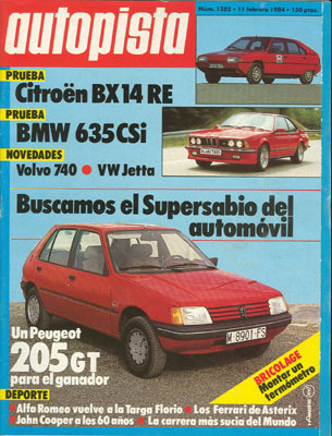 Primer contacto con el Volvo 740 GLE. Banco de Pruebas del Citroën BX 14 RE. Motores en miniatura. Prueba del BMW M635CSi. Targa Florio. La colección Ferrari del creador de Asterix. John Cooper a los 60 años. La carrera más sucia del mundo.
