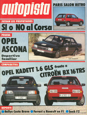 Salón Retromobile de París. Banco de Pruebas del Opel Ascona GT 1.8i. Referéndum: Opel Corsa. Juguetes Schuco. Prueba Comparativa: Citroën BX 16 TRS/Opel Kadett 1.6 GLS. Rallye Costa Brava.