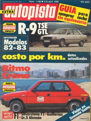 Banco de Pruebas del Seat Ritmo Crono 100-TC. Publicidad del Volkswagen Golf GTi mk1. Presentación del Renault 9 GTL y TSE. Panorámica del mercado europeo de automóvil con más de 300 modelos donde elegir. Anticipación de los modelos 82-83. XI Autocross Gerona. Campeonato de España de Rallyes. Campeonato del Mundo de Fórmula 1.