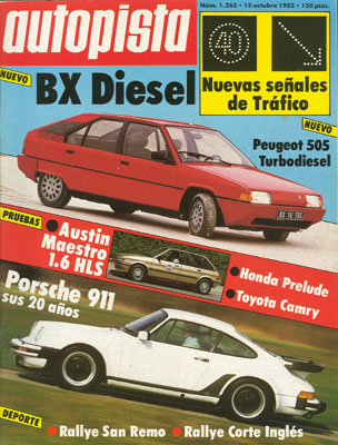 Banco de Pruebas del Austin Maestro 1.6 HLS. Presentación del Citroën BX 14 y BX 19 Diesel. Comparativa: Honda Prelude EX/Toyota Camry Liftback DX. Los 20 años del Porsche 911. Campeonto de Europa de Coches Históricos. Rallye de San Remo. Rallye El Corte Inglés.