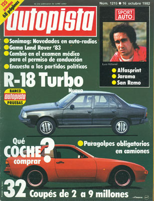 Banco de Pruebas del Renault 18 Turbo. Qué coche comprar? coupés de más de 2.000.000 pts. Trofeo Alfa Sprint Europa. Publicidad del Talbot Samba S. Jarama: Trofeo Otoño. XVI Rallye de Gerona. Rallye de San Remo.