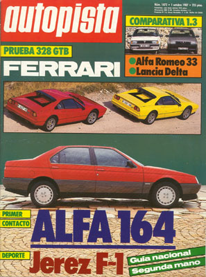 Banco de Pruebas del Ferrari 328. Primer contacto con el Alfa Romeo 164. Comparativa: Alfa Romeo 33 1.3 S/Lancia Delta 1300. Gran Premio de España de F1.