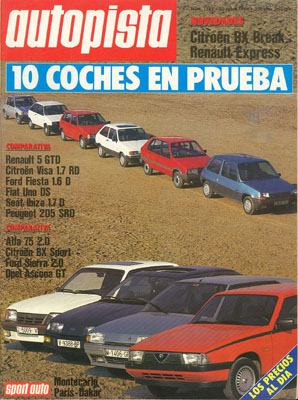 Prueba comparativa: Alfa Romeo 75 2.0/Citroën BX Sport/Ford Sierra 2.0S/Opel Ascona GT 1.8. Banco de Pruebas del Renault 5 GTD. Rallye de Montecarlo. Rallye París-Dakar.