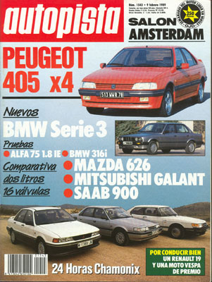 Banco de Pruebas del Alfa Romeo 75 1.8 IE. Mazda 626 2.0 GTI 16v/Mitsubishi Galant 2.0 GTI/Saab 9000i 16v. Salón del Automóvil de Amsterdam. Presentación de la nueva Serie 3 de BMW. Banco de Pruebas del BMW 316i. Rallye Cataluña-Costa Brava. 24 Horas de Chamonix.