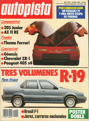 Contacto con el Corvette ZR-1. Presentación del Peugeot 405 X4. Prueba Comparativa: Peugeot 205 Junior/Citroën AX 11 RE. Banco de Pruebas del Lancia Thema Ferrari 8.32. Gran Premio de Brasil de F1.