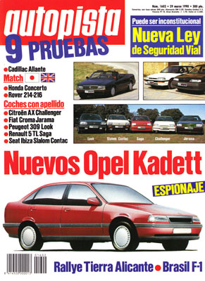 Prueba Comparativa: Honda Concerto SX 1.6i 16v/Rover 216 GSi 16v. Prueba del Rover 214 GSi 16v. Prueba del Cadillac Allanté. Prueba Comparativa: Citroën AX Challenger/Fiat Croma Jarama/Peugeot 309 Look/Renault 5 TL Saga/Seat Ibiza Slalom Contac. Rallye de Alicante. Gran Premio de Brasil de F1.