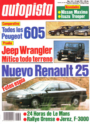 Prueba Comparativa: Peugeot 605 SRi/605 SV 3.0/605 SV 24. Banco de Pruebas del Jeep Wrangle 2.5. 24 Horas de Le Mans. Campeonato de España de Rallyes: Orense.