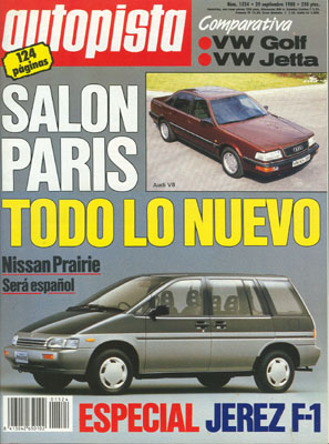Vehículos experimentales en el Salón de París. Especial Gran Premio Tío Pepe de España de F1. Comparativa: Volkswagen Golf Sprinter/Volkswagen Jetta CL. Raid Barcelona-Desierto de Almería. Rallye de Tierra de Toledo. Gran Premio de Portugal de F1.