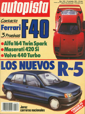 Banco de Pruebas del Volvo 440 Turbo. Presentación del Porsche 911 Carrera 4. Contacto con el Ferrari F40. Maserati 420 Si. Banco de Pruebas del Alfa Romeo 164 Twin Spark. Rallye Tierra del RACE de Madrid. Velocidad en Jerez.