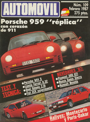 Magazin: el Porsche 959 y sus réplicas. Contacto con el Lancia Ferrari 8.32. Prueba del Porsche 944 S. Prueba del Opel Omega 2.0i. París-Dakar ´84. Mundial de Rallyes ´87. Rallye de Montecarlo. Técnica: Fiat ECV.