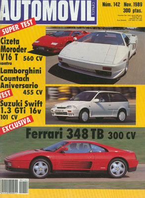 Prueba del Ferrari 348 TB. Comparativa: Cizeta Moroder V16 T/Lamborghini Countach Aniversario. Pininfarina Mythos. Prueba del Ford Sierra 2.0i S DOHC. Prueba del Suzuki Swift 1.3 Gti 16v. Fórmula 1: Portugal y España. Rallye San Remo. Rallye de Australia.