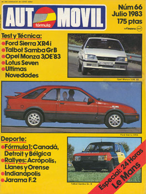 I Baja Montesblancos Aragón. Entrevista a Mauro Nesti. Prueba del Talbot Samba Gr. B. Prueba del Lotus Seven Serie 3. Prueba del Ford Sierra XR4i. Fórmula 1: Canadá, Detroit y Bélgica. Rallye Acrópolis, Llanes y Orense. Indinápolis. Jarama F.2.