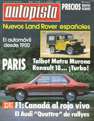 Presentación del Renault 18 Turbo. Reportaje sobre Land Rover España. El siglo del Automóvil. Consultorio Técnico. Presentación del Talbot-Matra Murena. Rallye Tour de France. Campeonato Alemán de Velocidad. Gran Premio de Canadá de F1. Rallye Isla de Tenerife.