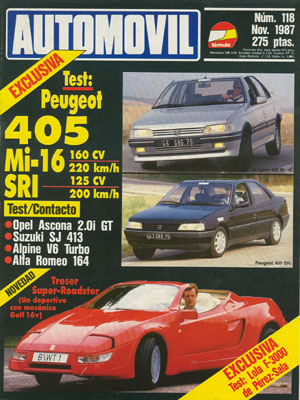 Super-Roadster Treser. Prueba Comparativa: Peugeot 405 SRi/405 Mi-16. Prueba del Opel Ascona GT 2.0i (130 CV). Prueba del Suzuki SJ 413. Rallye San Remo. Rallye Costa de Marfil.