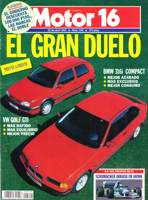 Prueba Comparativa: BMW 316i Compact/Volkswagen Golf GTi. Prueba del Alfa Romeo 164 Q4. Del Rekord C al Omega '94. Bertone Karisma. Honda VFR 750 F.