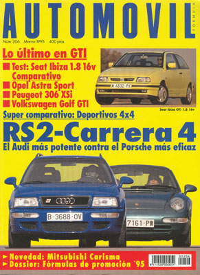 Prueba Comparativa: Audi RS2/Porsche 911 Carrera 4. Dossier: Porsche Design. Prueba del Seat Ibiza GTi 1.8 16v. Prueba Comparativa: Opel Astra Sport/Peugeot 306 XSi/Volkswagen Golf GTi. Ford GT90. Dossier: Fórmulas de promoción. Rallye de Montecarlo. Rallye de Suecia. Clásicos: Nardi 1000 GT de 1965.