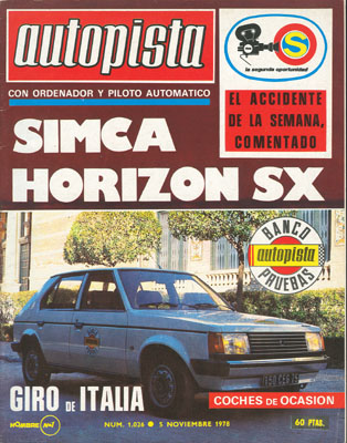 Prueba del Simca Horizon SX. La segunda oportunidad: frenar en curva. La subasta del Motor Show de Birmingham. Rallye Bandama. Giro de Italia. Jarama: Trofeo Polo Villaamil. Consultorio.