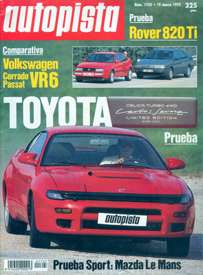 Prueba Comparativa: Volkswagen Passat VR6/Corrado VR6. Prueba del Toyota Celica "Carlos Sainz". Prueba del Rover 820 Ti. Prueba del Mazda 787B Le Mans. Campeonato de España de Turismos.