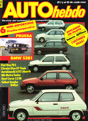 • FIAT UNO 70 S/CITROËN VISA GT TONIC/AUTOBIANCHI A-112 ABARTH/MG METRO TURBO/OPEL CORSA 1.3 SR/TALBOT SAMBA RALLYE