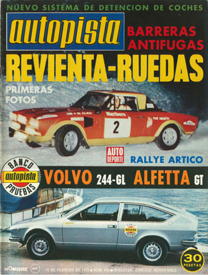 Nuevo Simca 1300-1500. Prueba del Volvo 244 GL. En un Simca 1200 por las carreteras de la India. Póster del Saab V-4. Prueba del Alfa Romeo Alfetta GT 1800. Nueva barqueta de fibra de carbono realizada por Sabater, Coma Cros y Rodón. Rallye Costa Brava.