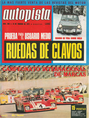 La subida de los seguros. Quince empresas de automóviles entre las más grandes de España. Los neumáticos de clavos. Los Ferrari, favoritos en el Campeonato Internacional de Marcas. Prueba de la Barqueta Adidas. Campeonato de España de Rallyes. Rallye Costa Brava. Técnica: el amperímetro.